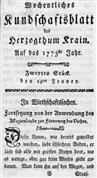 Wochentliches Kundschaftsblatt des Herzogthums Krain (1775), številka 3. URN:NBN:SI:doc-J0SXGGTK from http://www.dlib.si