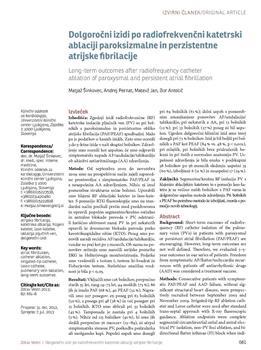 Šinkovec, Matjaž, Pernat, Andrej, Jan, Matevž, Antolič, Bor. "Dolgoročni izidi po radiofrekvenčni katetrski ablaciji paroksizmalne in perzistentne atrijske fibrilacije."