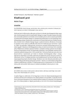 Fortuna, Krištof, Plesničar, Ana, Lovšin, Klemen. "Kladivasti prst."