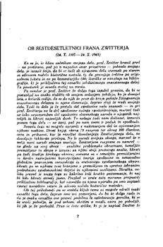 Grafenauer, Bogo. "Ob šestdesetletnici Frana Zwitterja."