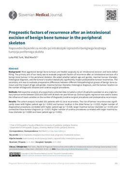 Pilič Turk, Luka, Mavčič, Blaž. "Prognostic factors of recurrence after an intralesional excision of benign bone tumour in the peripheral skeleton."