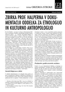 Hudelja, Mihaela. "Zbirka prof. Halperna v dokumentaciji Oddelka za etnologijo in kulturno antropologijo."