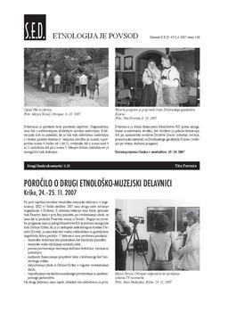 Porenta, Tita, Nedeljkov, Savo (2007). Poročilo o drugi etnološko-muzejski delavnici.