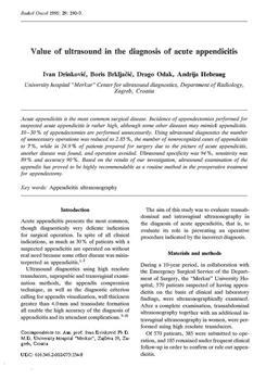 Drinković, I..., Brkljačić, B..., Odak, D..., Hebrang, A.... "Value of ultrasound in the diagnosis of acute appendicitis."