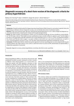 Henning, Mattias A. S., Al-Rahimi, Hajer I., Jemec, Gregor B. E., Pedersen, Ole B.. "Diagnostic accuracy of a short-form version of the diagnostic criteria for primary hyperhidrosis."