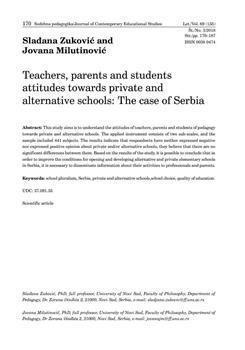 Zuković, Slađana, Milutinović, Jovana (2018). Teachers, parents and students attitudes towards private and alternative schools.