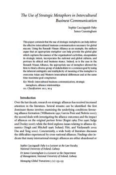 Cacciaguidi-Fahy, Sophie, Cunningham, James. "The use of strategic metaphors in intercultural business communication."
