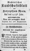 Wochentliches Kundschaftsblatt des Herzogthums Krain (1775), številka 24. URN:NBN:SI:doc-TWNWGQWF from http://www.dlib.si
