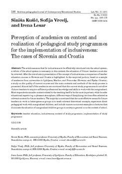Kušić, Siniša, Vrcelj, Sofija, Lesar, Irena. "Perception of academics on content and realization of pedagogical study programmes for the implementation of inclusiveness."