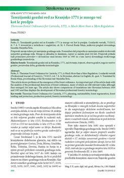 Perko, Franc (2015). Terezijanski gozdni red za Kranjsko 1771 je mnogo več kot le predpis.