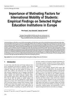 Novak, Riko, Slatinšek, Anja, Devetak, Gabrijel. "Importance of motivating factors for international mobility of students."