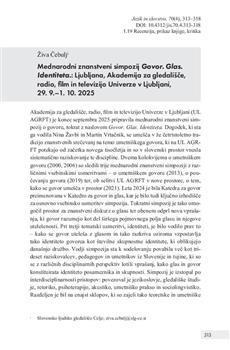 Mednarodni znanstveni simpozij Govor. Glas. Identiteta.: Ljubljana, Akademija za gledališče, radio, film in televizijo Univerze v Ljubljani, 29. 9.–1. 10. 2025 (številka: 4, 2025)