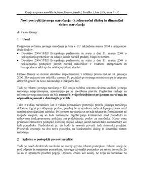 Novi postopki javnega naročanja - konkurenčni dialog in dinamični sistem naročanja (številka: 1, 2006)
