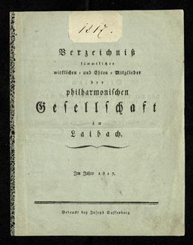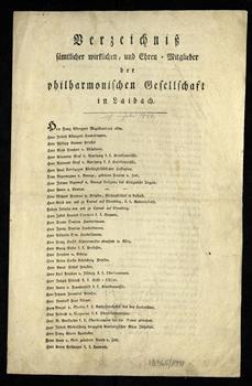 Verzeichnis sämmtlicher wirklichen, und Ehren-Mitglieder der philharmonischen Gesellschaft in Laibach