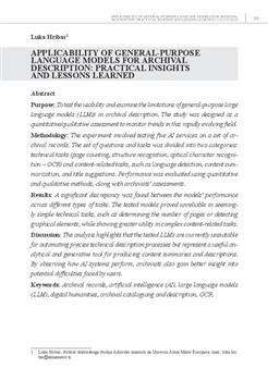 Applicability of general-purpose language models for archival description (številka: 2, 2025)