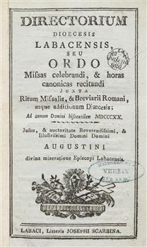 Directorium Dioecesis Labacensis, seu Ordo Missas celebrandi, & horas canonicas recitandi juxta Ritum Misalis, & Breviarii Romani, ac Proprii Labacensis : Ad Annum Domini ...