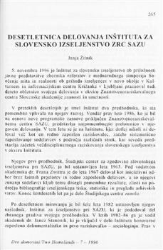 Revija Dve domovini izhaja dvakrat na leto, od leta 1990. Izdaja jo Inštitut za slovensko izseljenstvo v Ljubljani. Objavlja znanstvene in strokovne članke, poročila, razmišljanja in knjižne ocene s področja humanističnih in družboslovnih disciplin, ki obravnavajo različne vidike migracij. Publikacija je večdisciplinarna in večjezična.