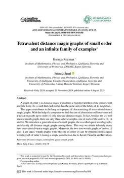 Tetravalent distance magic graphs of small order and an infinite family of examples (številka: 4, article p4.05, 2025)