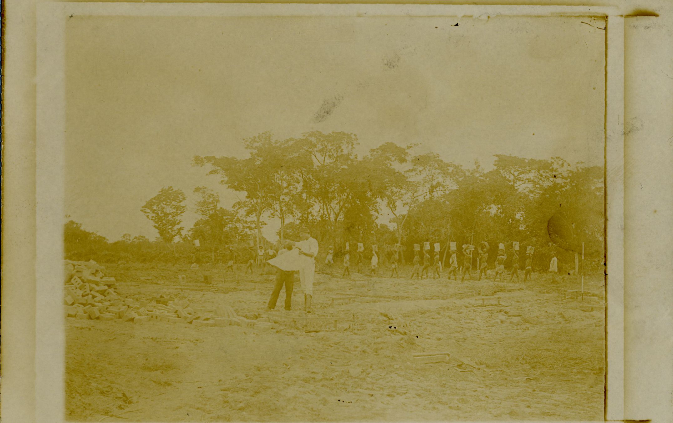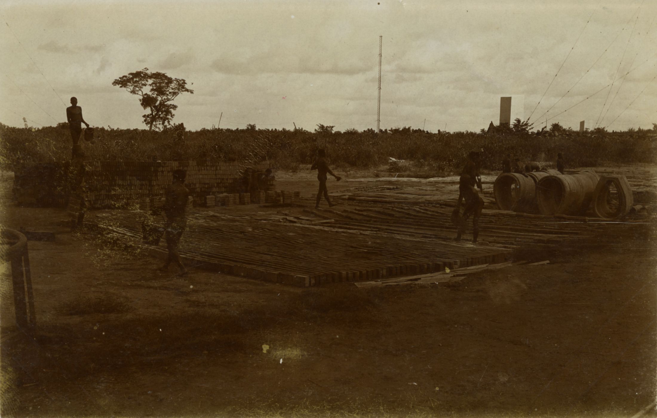 Raztovarjanje materiala za gradnjo radiotelegrafskega kompleksa v Kamini na postaji Agbonu
