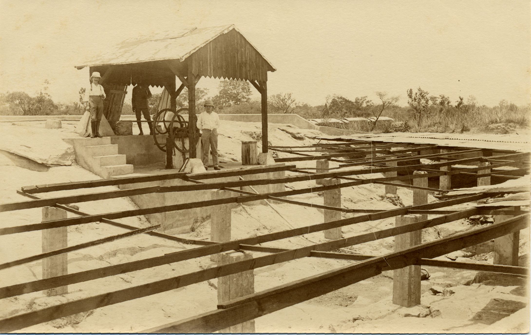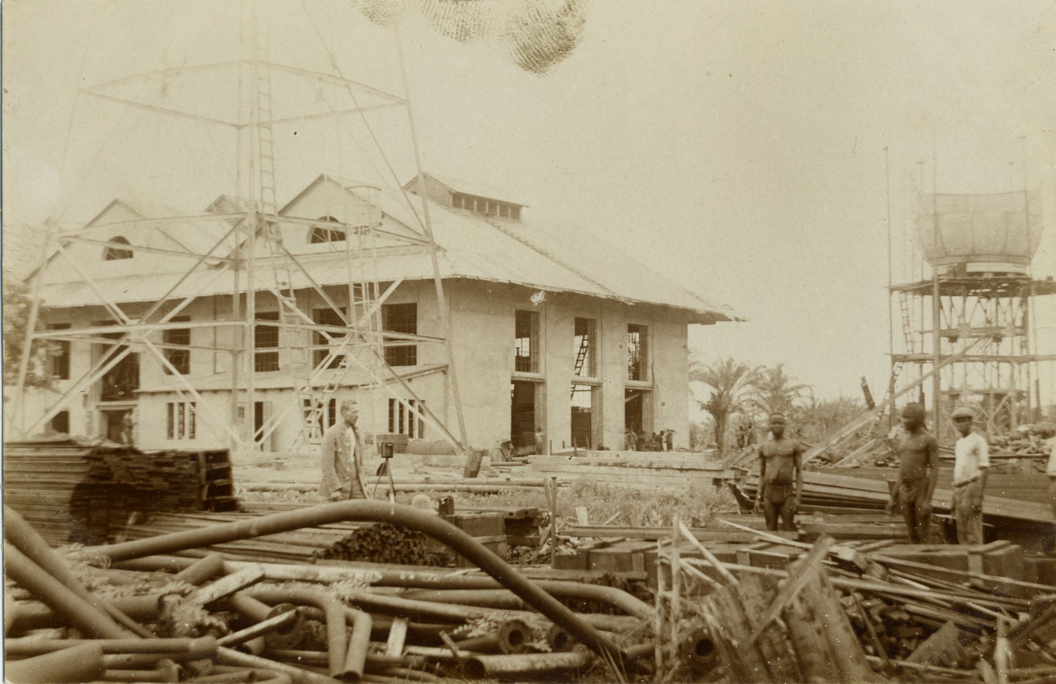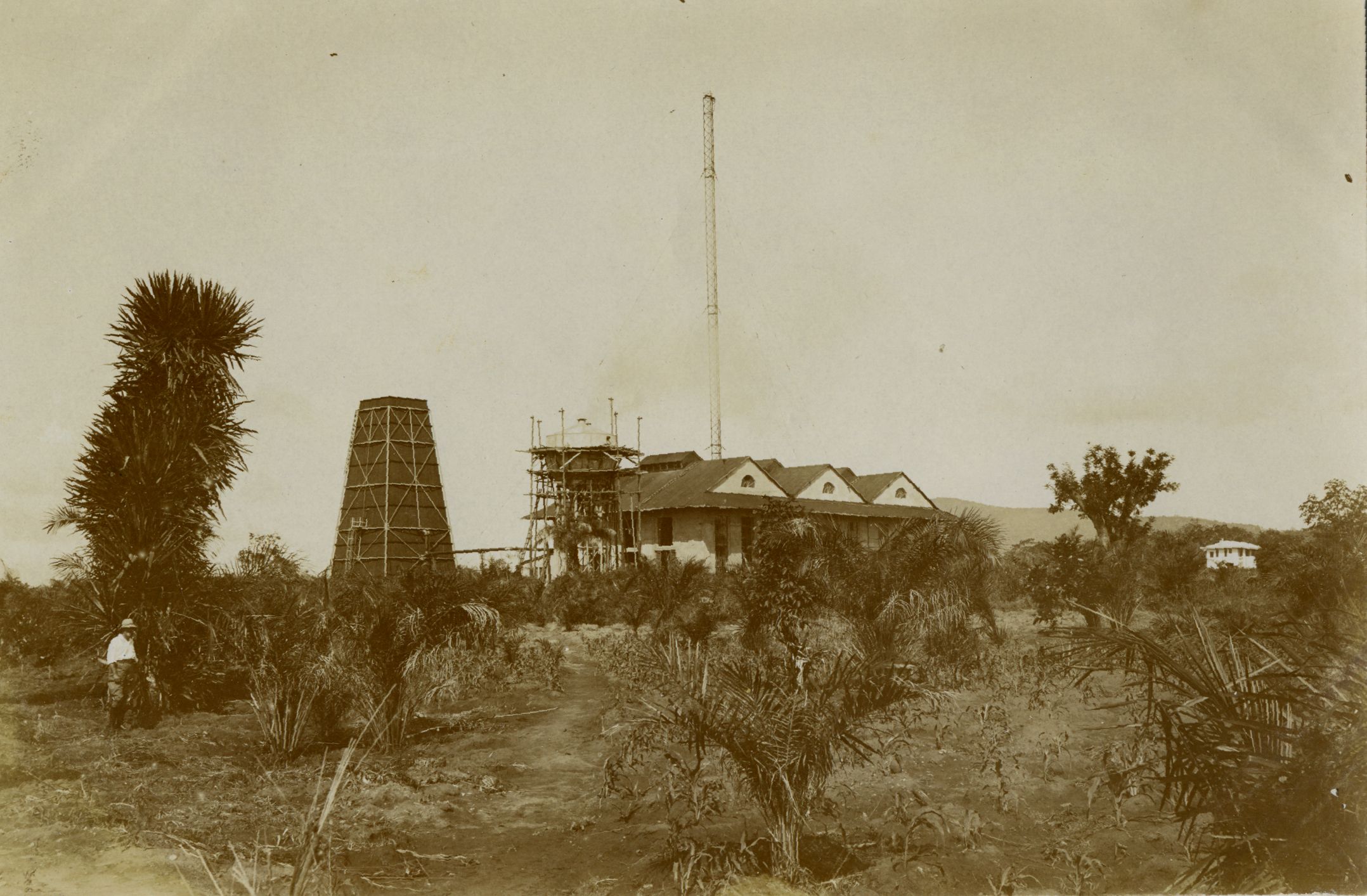Gradnja ene od stavb radiotelegrafskega kompleksa v Kamini