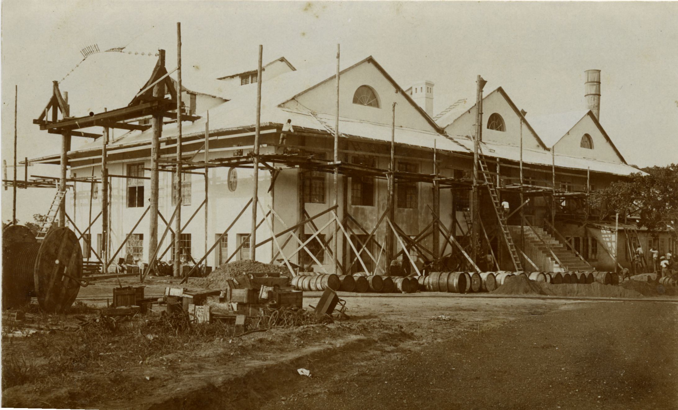 Gradnja prvega nadstropja enega od objektov radiotelegrafskega kompleksa v Kamini 1