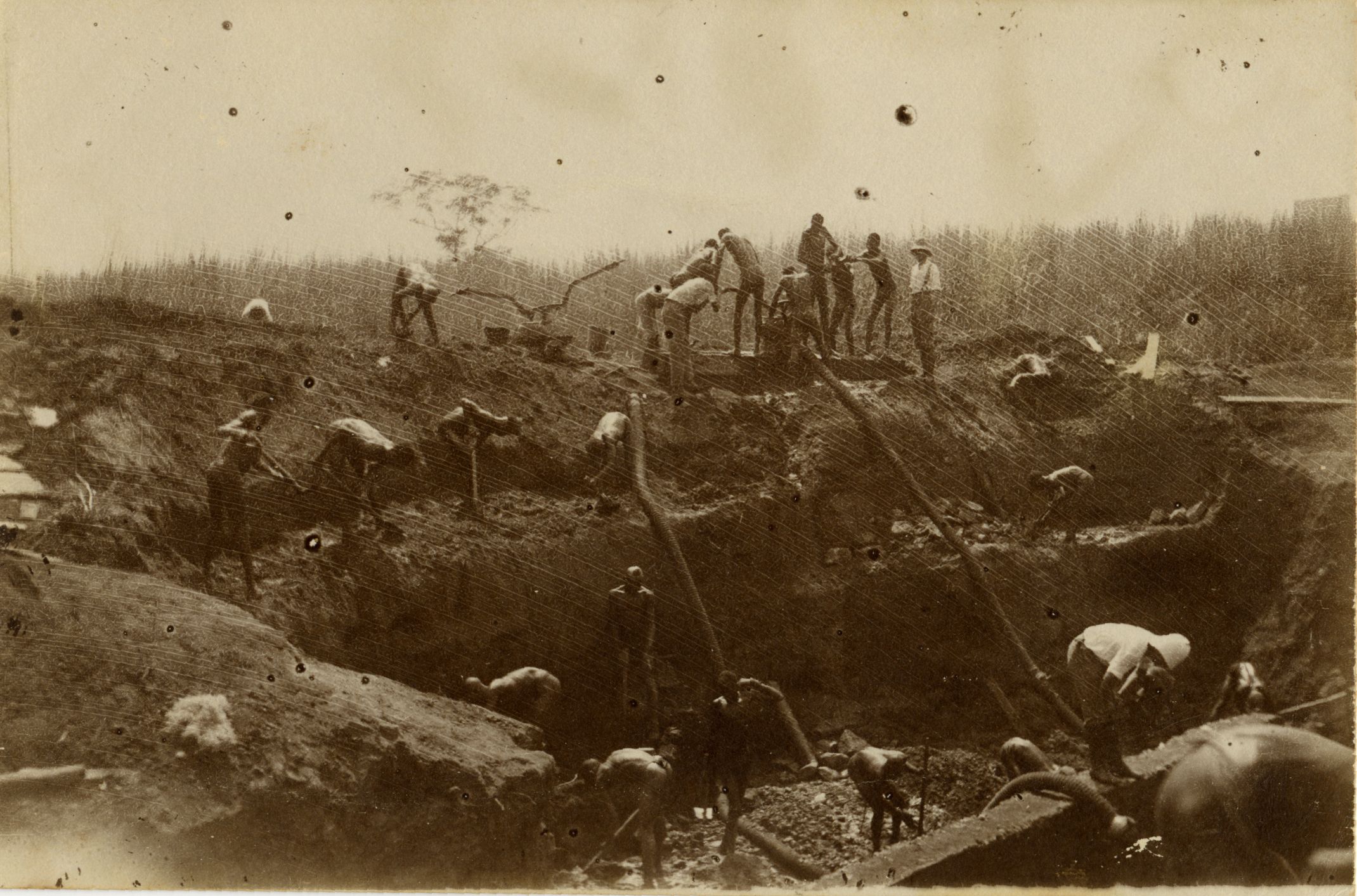 Nemški priseljenci, ki so radi obiskovali Kamino in se z vagončki vozili po obsežnem gradbišču