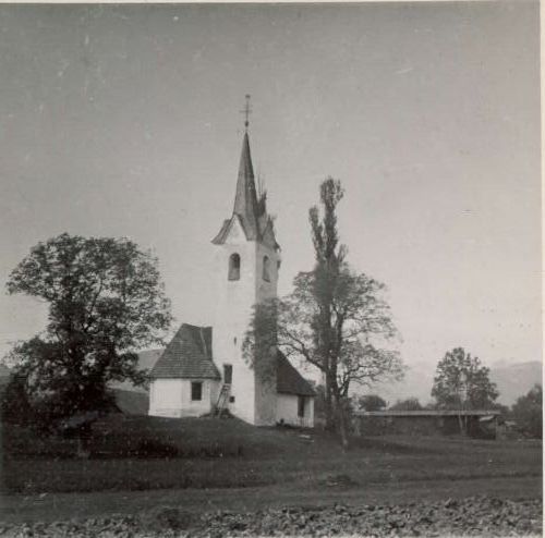Vrba: cerkev sv. Marka s Stolom v ozadju