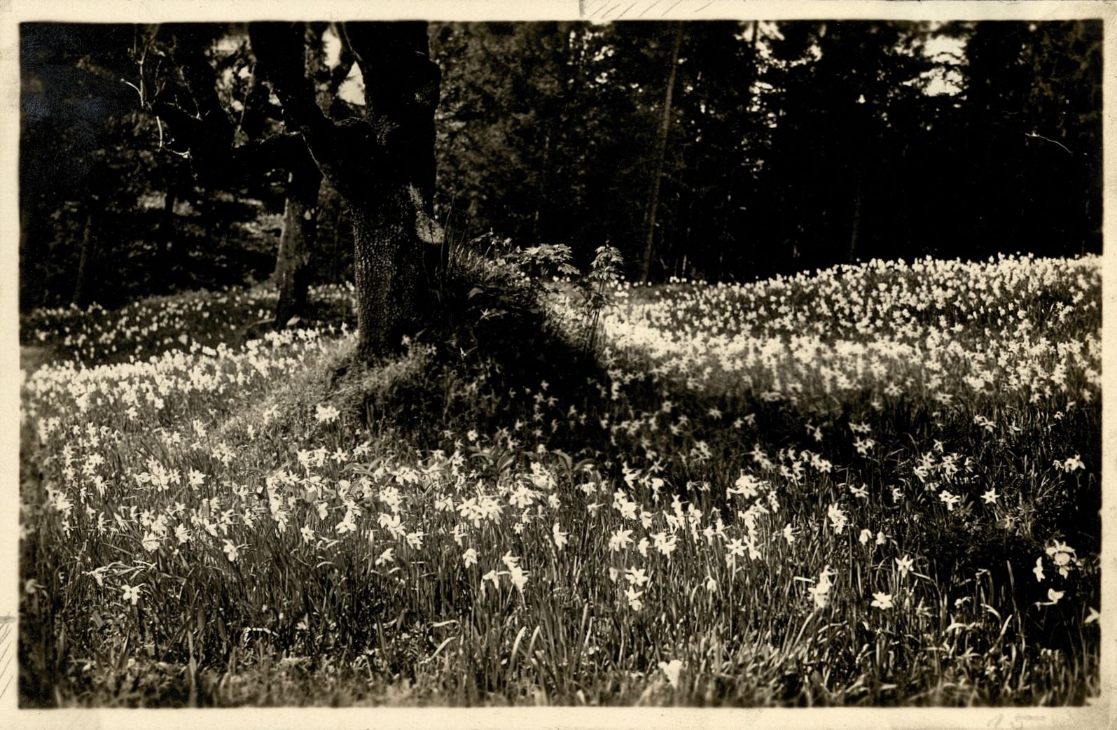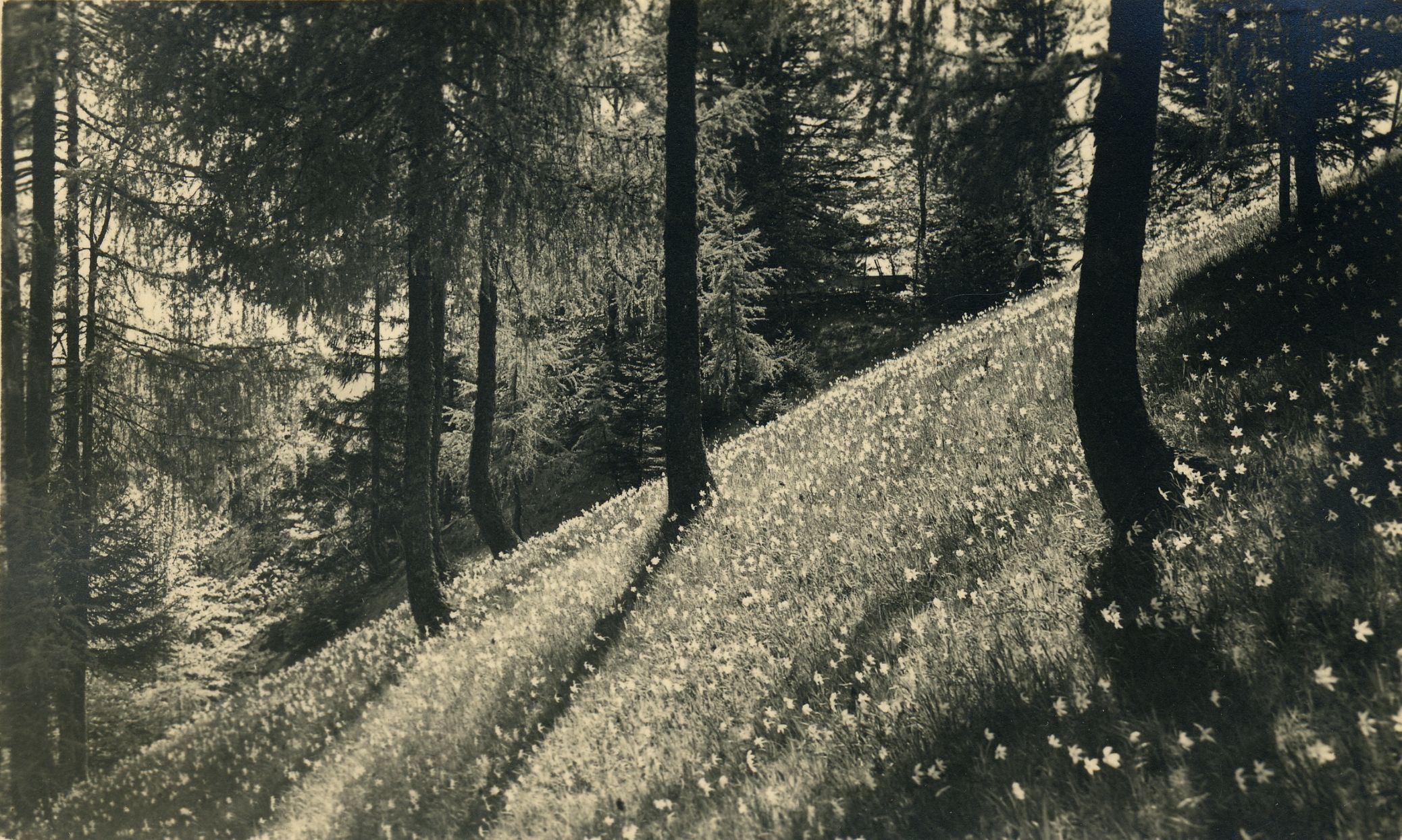 Travnik z narcisami pod macesni