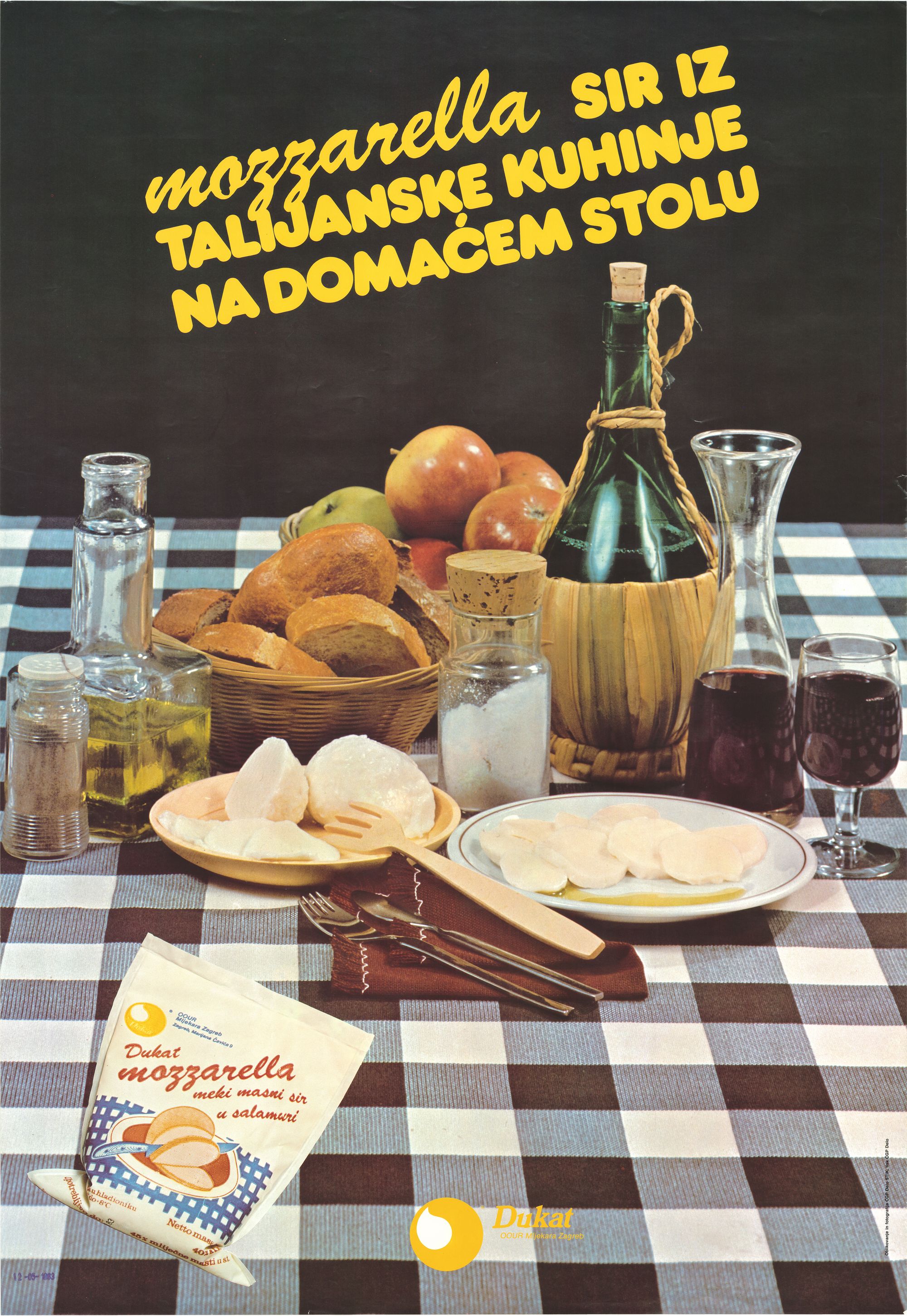 Mozzarella sir talijanske kuhinje na domaćem stolu (Dukat)