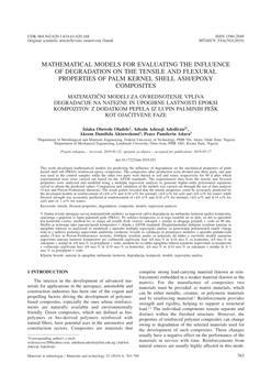 Oladele, Isiaka Oluwole, Adesoji Adediran, Adeolu, Akinwekomi, Akeem Damilola, Adara, Peace Pamilerin (2019). Mathematical models for evaluating the influence of degradation on the tensile and flexural properties of palm kernel shell ash/epoxy composites.