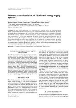 Kragelj, Dušan, Kramberger, Tomaž, Šinko, Simona, Rupnik, Bojan. "Discrete event simulation of distributed energy supply systems."