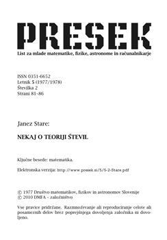 Stare, Janez. "Nekaj o teoriji števil."