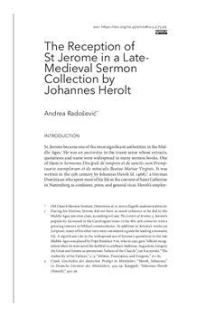 Radošević, Andrea (2023). The reception of St Jerome in a late- Medieval sermon collection by Johannes Herolt.