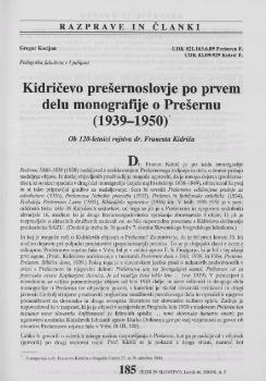 Kocijan, Gregor (2001). Kidričevo prešernoslovje po prvem delu monografije o Prešernu (1939-1950).