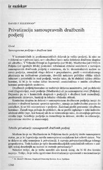 Ellerman, David P.. "Privatizacija samoupravnih družbenih podjetij."