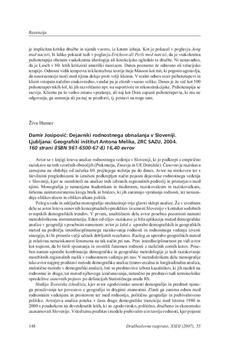 Humer, Živa. "Damir Josipovič: Dejavniki rodnostnega obnašanja v Sloveniji. Ljubljana: Geografski inštitut Antona Melika, ZRC SAZU, 2004. 160 strani (ISBN 961-6500-67-8) 16,40 evrov."