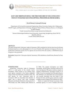 Murányi, Dávid, Hwang, Jeong Mi (2015). Just like birdwatching: The first record of Megaperlodes tiunovi Teslenko 2015 (Plecoptera: Perlodidae) from Korea.