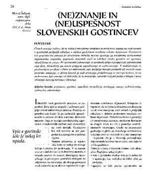 Šuligoj, Metod. "(Ne)znanje in (ne)uspešnost slovenskih gostincev."