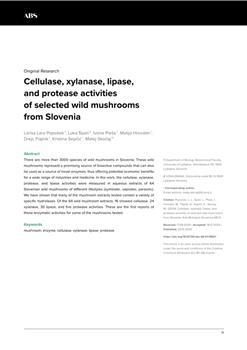 Popošek, Larisa Lara, Šparl, Luka, Pleše, Ivona, Hrovatin, Matija, Flajnik, Drejc, Sepčić, Kristina, Skočaj, Matej. "Cellulase, xylanase, lipase, and protease activities of selected wild mushrooms from Slovenia."