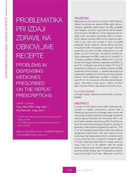 Pisk, Nina, Banović, Ana. "Problematika pri izdaji zdravil na obnovljive recepte."