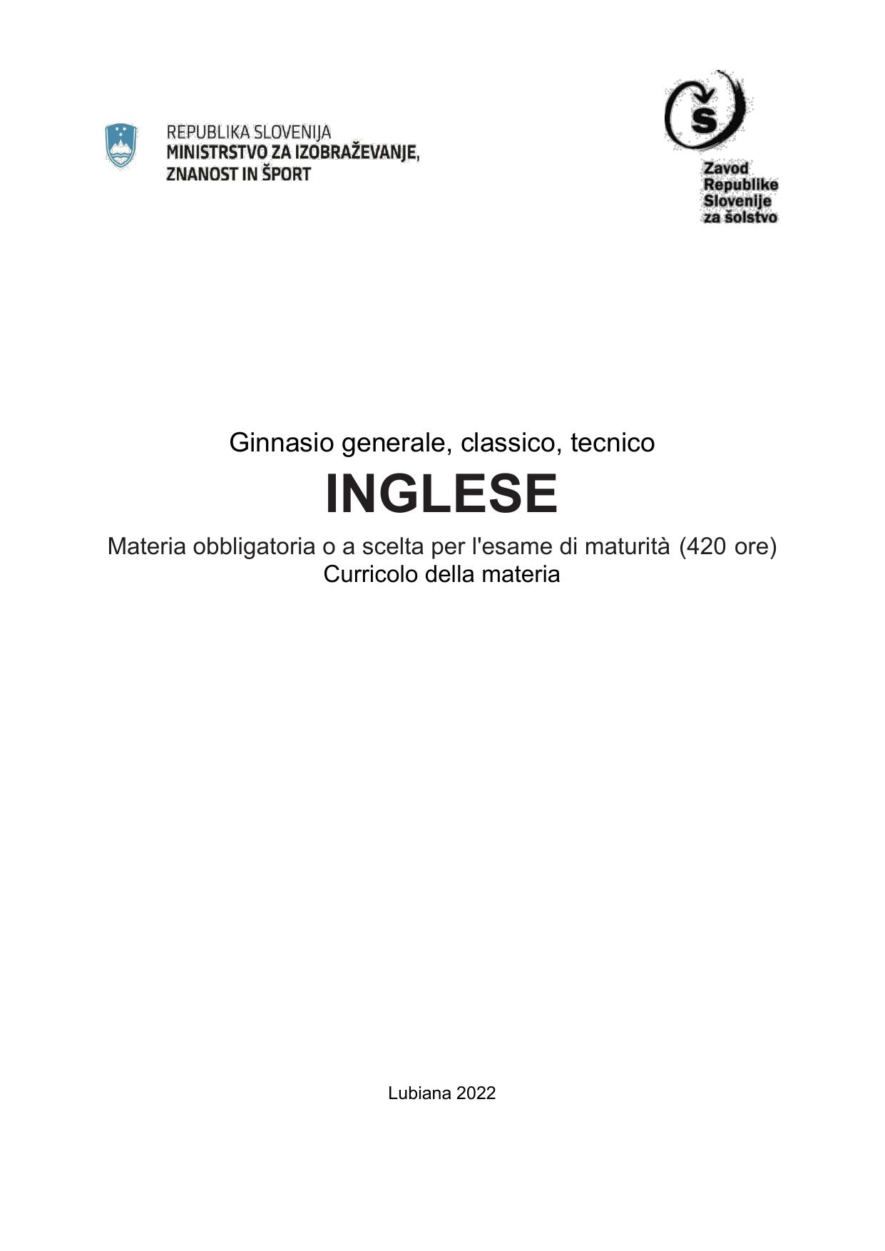Istituto dell'educazione della RSMinistero dell’Istruzione, Scienza e Sport della Repubblica di Slovenia, 2022.