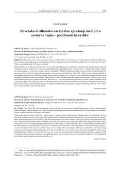 Lipušček, Uroš. "Slovensko in albansko nacionalno vprašanje med prvo svetovno vojno - podrobnosti in razlike."