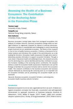 Lappi, Tuomas, Lee, Tzong-Ru, Aaltonen, Kirsi (2017). Assessing the health of a business ecosystem.