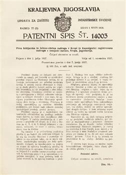 Patentni spis. Razred 77, Sport, igre, narodne zabave. Oddelek 1, Družabne igre1929-1939(Zbirni zapis)