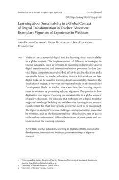 Dittrich, Ann-Kathrin, Mathabathe, Kgadi Clarrie, Eloff, Irma, Agostini, Evi. "Learning about sustainability in a global context of digital transformation in teacher education."