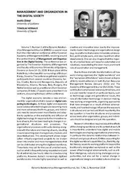 Černe, Matej, Hernaus, Tomislav. "Management and organization in the digital society."