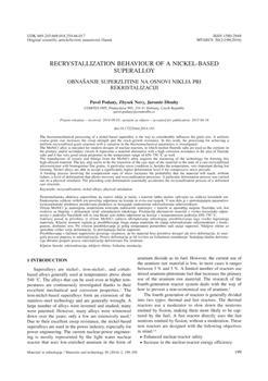 Podaný, Pavel, Nový, Zbyšek, Dlouhý, Jaromír. "Recrystallization behaviour of a nickel-based superalloy."