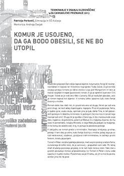 Perkovič, Patricija (2013). Komur je usojeno, da ga bodo obesili, se ne bo utopil.