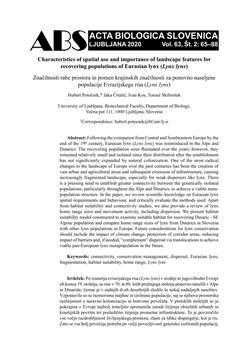 Potočnik, Hubert, Črtalič, Jaka, Kos, Ivan, Skrbinšek, Tomaž. "Characteristics of spatial use and importance of landscape features for recovering populations of Eurasian lynx (Lynx lynx)."