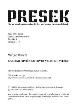 Prosen, Marijan (1991). Kako so prvič ugotovili velikost zvezde.